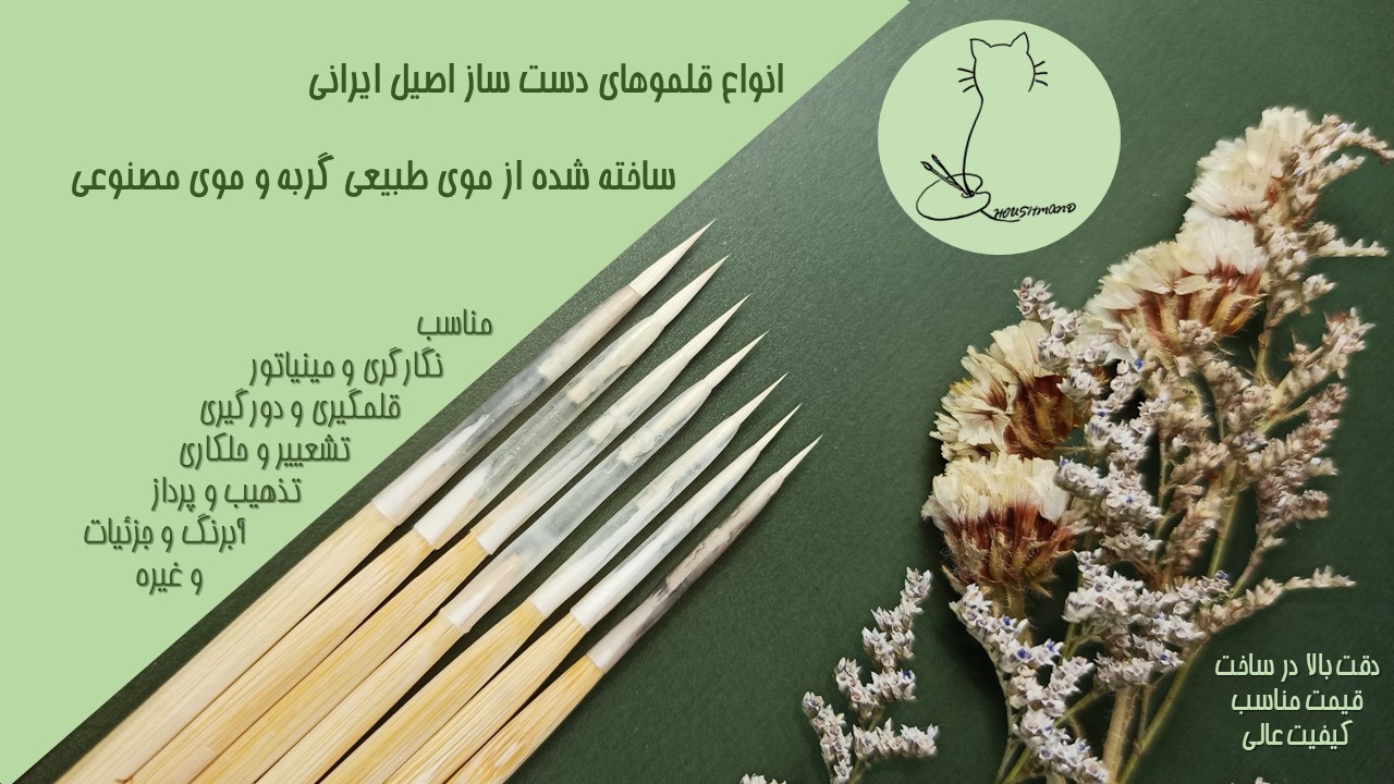 قلم مو یکی از ابزارهای نقاشی می باشد که دارای طرح و اندازه و ساختار متفاوتی هستند و در کل می توان قلم موها را از نظر طرز قرار گرفتن الیاف، کاربرد، اندازه و جنس موها، در دسته بندی های متفاوت قرار داد. قلموهای دست ساز ما شامل موی گربه و موی مصنوعی هستند. قلموی گربه، قلموی اصیل ایران بوده که مناسب هنر نگارگری، مینیاتور و تذهیب می باشد. این قلمو شامل چهار دسته تذهیب، پرداز، قلمگیری و حلکاری است که هرکدام سایزهای متفاوتی دارند.